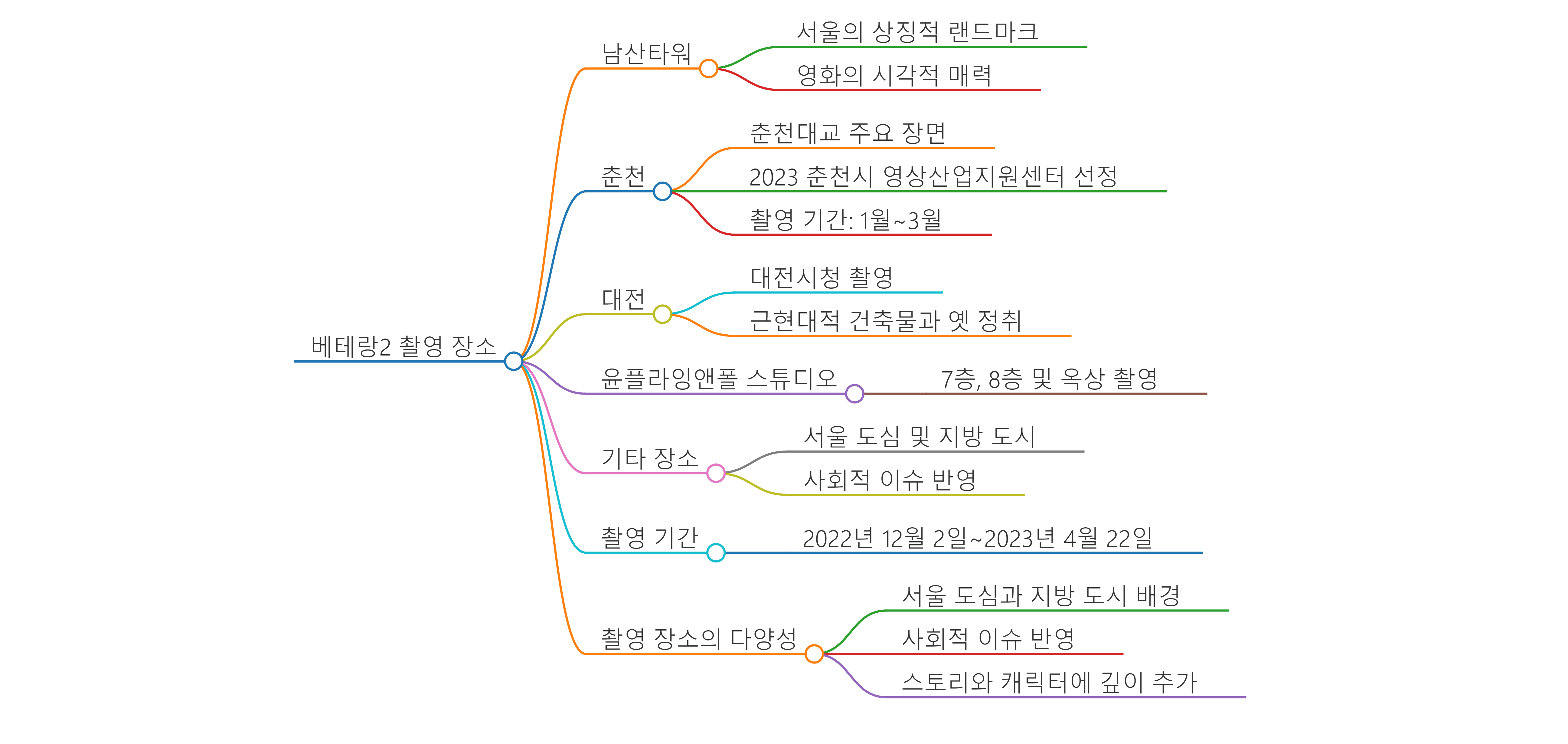 - 춘천: 영화의 일부 장면은 춘천에서 촬영되었으며, 특히 춘천대교에서 주요 장면이 촬영되었습니다. 이 지역은 '2023 춘천시 영상산업지원센터 로케이션 인센티브 사업'의 선정작으로, 촬영 기간은 지난해 1월부터 3월까지였습니다.