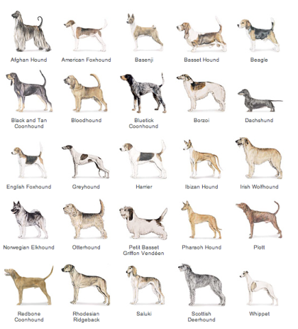 - Sighthounds (시각 하운드): 빠르게 움직이는 사냥감을 시각으로 추적 (예: 그레이하운드, 아프간 하운드)